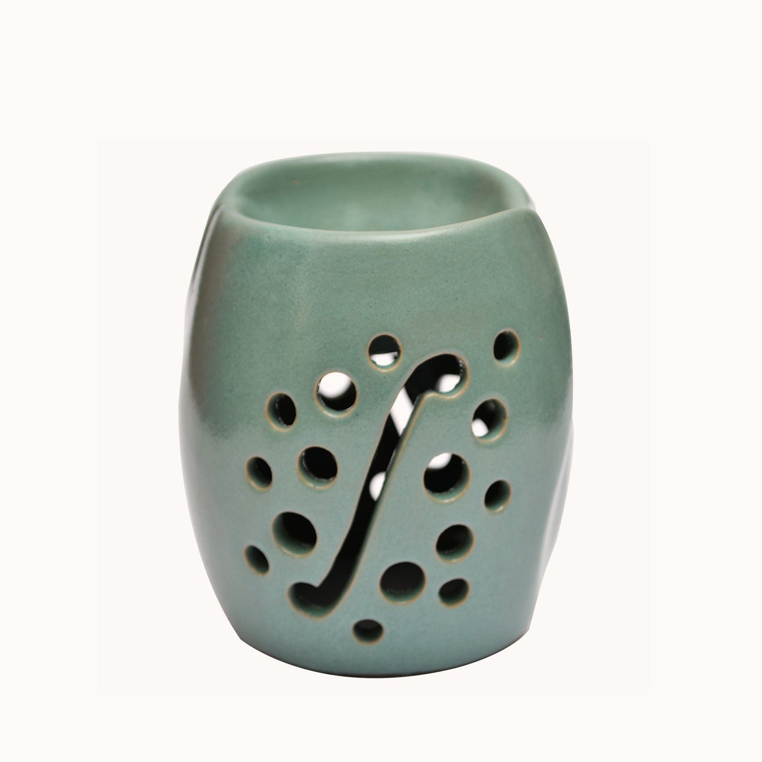 Aqua handcrafted oil burner for diffusing aromatic scents.