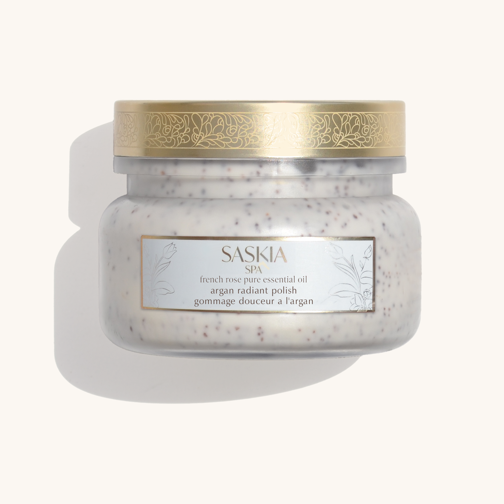 SASKIA Spa Argan Radiant Polish gently exfoliates with finely ground argan seeds, revealing smoother skin. Enriched with French rose essential oil, rich in vitamins A, B, C, E, and K, it offers antioxidant benefits that combat signs of aging. Natural emollients hydrate and nourish, leaving skin soft, radiant, and rejuvenated.