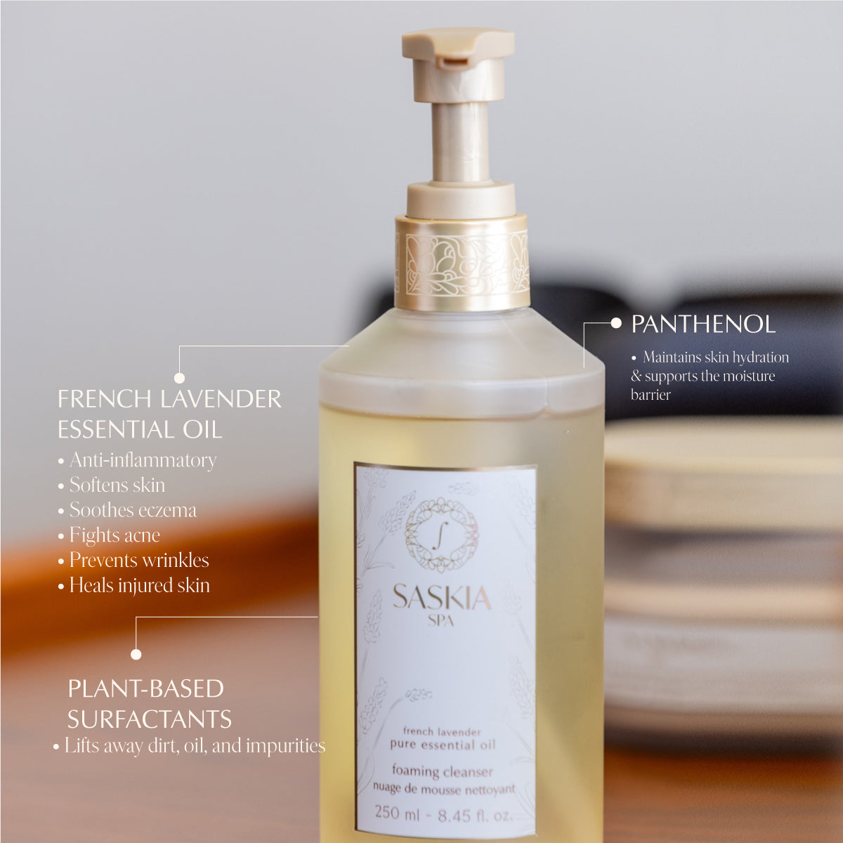 Awaken your skin with the soft caress of this gentle foaming cleanser, infused with the calming scent of French Lavender Essential Oil. Formulated with mild surfactants and soothing Panthenol, it effectively removes impurities while maintaining the skinƒ??s natural moisture balance. The light, airy foam refreshes and comforts the skin, leaving it clean, soft, and delicately perfumed with a serene floral aroma. Perfect for daily rituals of gentle cleansing and renewal.