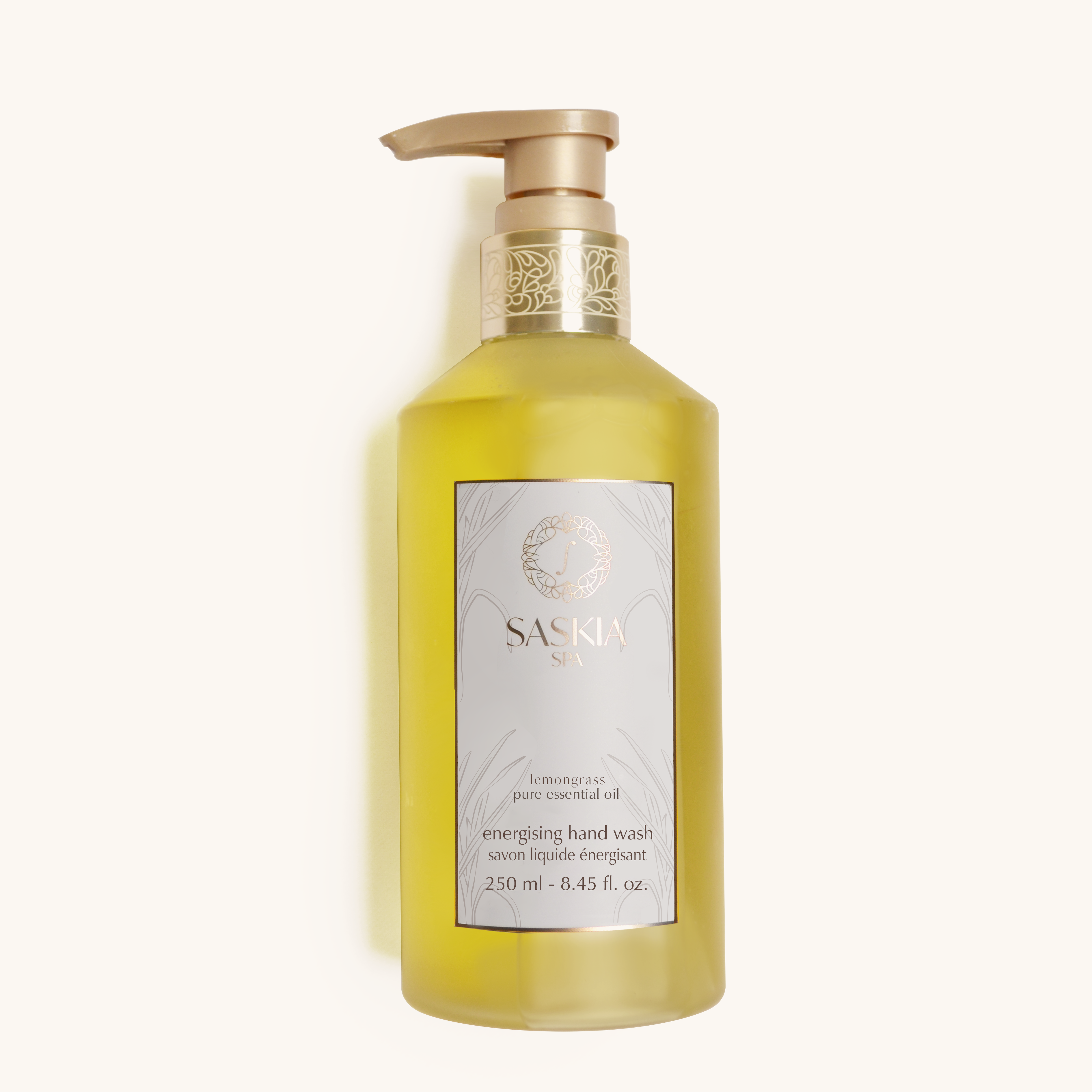 SASKIA Spa Hand Wash gently cleanses with plant-based foaming agents, leaving hands refreshed and soft. Infused with ?˜lemongrass essential oil, Infused with lemongrass essential oil, known for its purifying and toning properties, it helps maintain skin balance while uplifting the senses with its fresh, citrusy aroma.